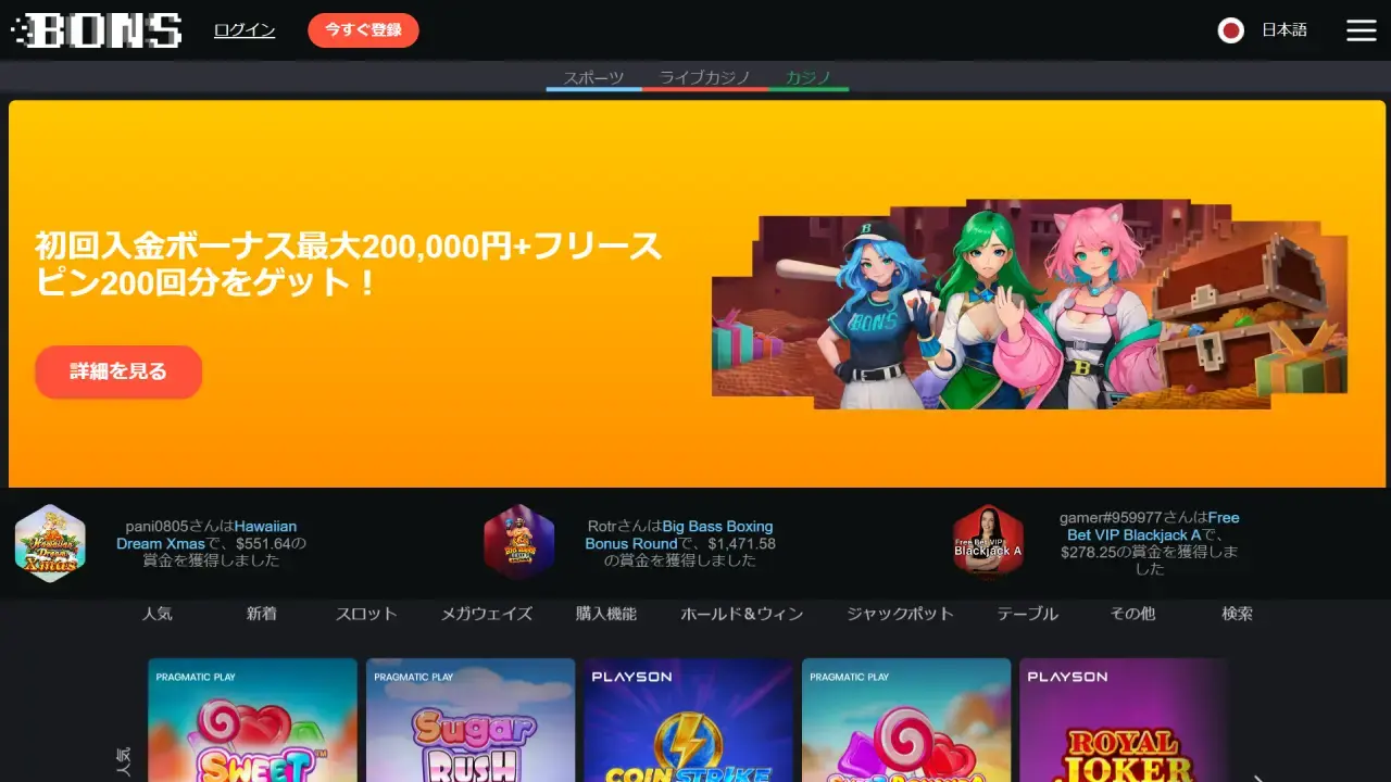 ボンズでは、ほかのオンカジと比較してもかなり多くのボーナスが用意されています。