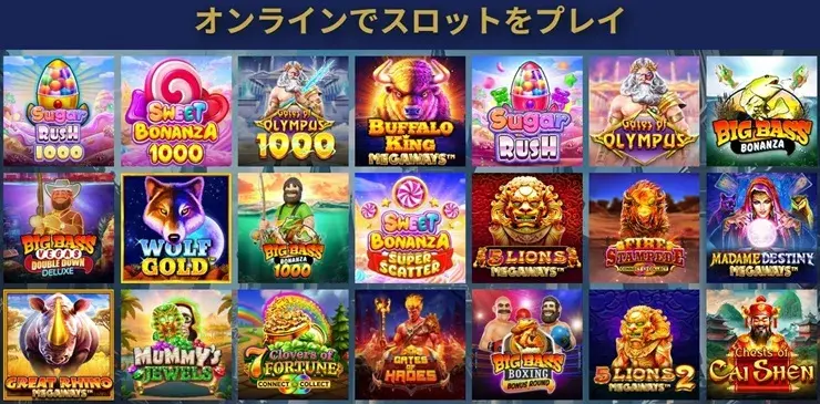 ただし、日本語でプレイできるJapaneseシリーズや一攫千金が狙えるライトニングシリーズなどがラインナップされていません。