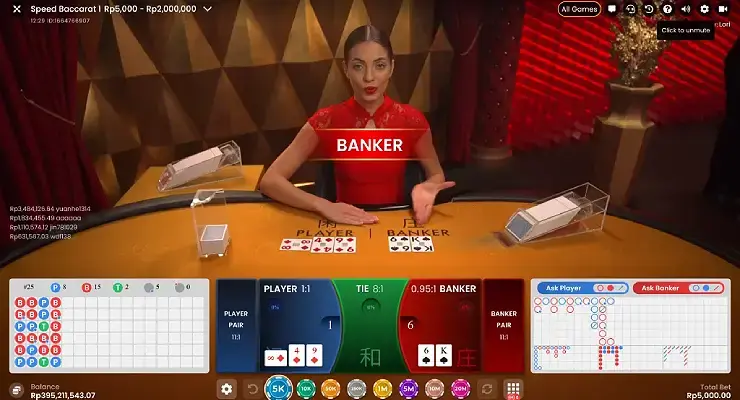 「プレイヤー◯、バンカー◯、バンカーの勝ちです。」などと日本語で進行してくれた上に、チャットで日本語で会話をすることも可能なため、日本語で安心してプレイしたい方に最適のオンラインバカラです。