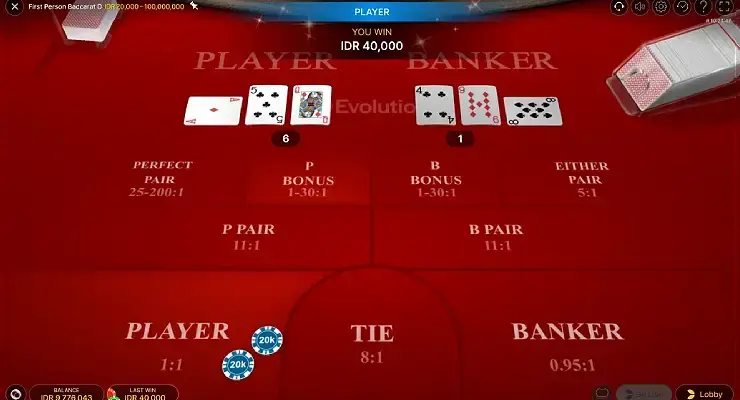 Evolution社が提供する、ファーストパーソンシリーズのバカラで、ライブバカラのコンピューターグラフィックス版と表現したほうが正しいでしょう。