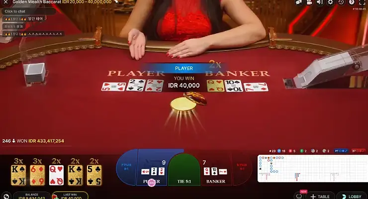 ゴールデンウェルスバカラ(Golden Wealth Baccarat)は、マルチプライヤーが搭載され、高額配当が狙えるバカラです。