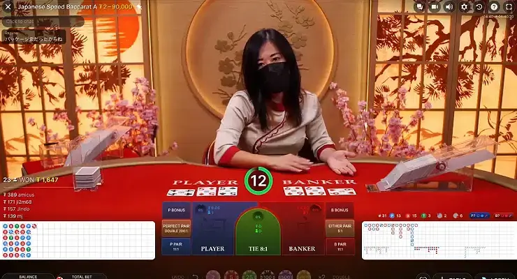 ジャパニーズバカラ(Japanese Baccarat)は、ディーラーが日本語でゲームを進行するスピードバカラです。