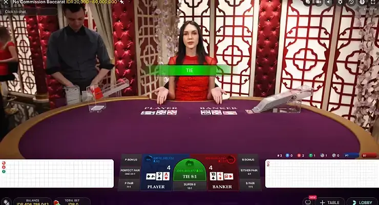 ノーコミッションバカラ(No Commission Baccarat) は、名称の通り、コミッション(手数料)が発生しないバカラです。
