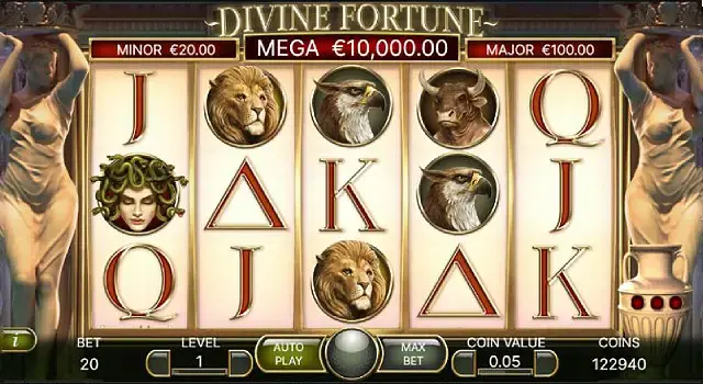 数千万円規模の当たりを連発し、当選者が何人も確認されているのが、プログレッシブジャックポットNETENE社の『ディバインフォーチュン(DIVINE FORTUNE)』です!