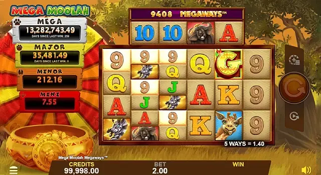 オンカジ界での最高当選額を出した実績を持つMicrogaming社の『メガムーラ(Mega Moolah)』です。