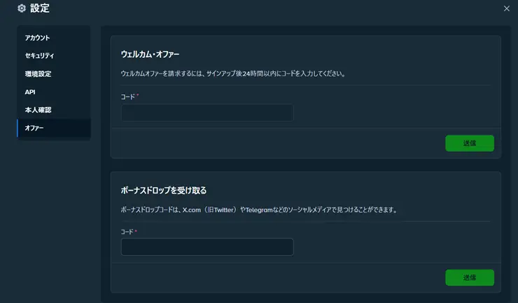 - ウェルカム・オファー欄にボーナスコード「StakeNaviJP」を入力