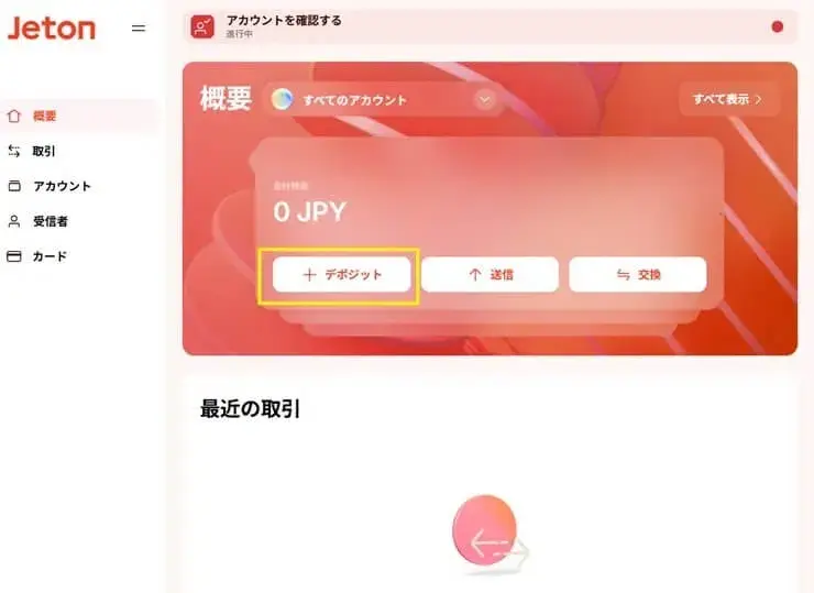Jetonへの入金手順(クレジットカードでの入金編)