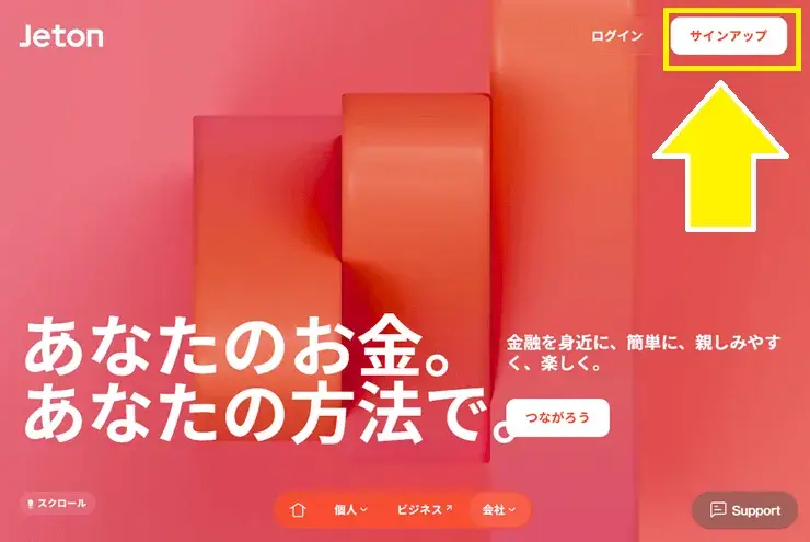 1.公式サイトにアクセス、右上の「サインアップ」を選択する